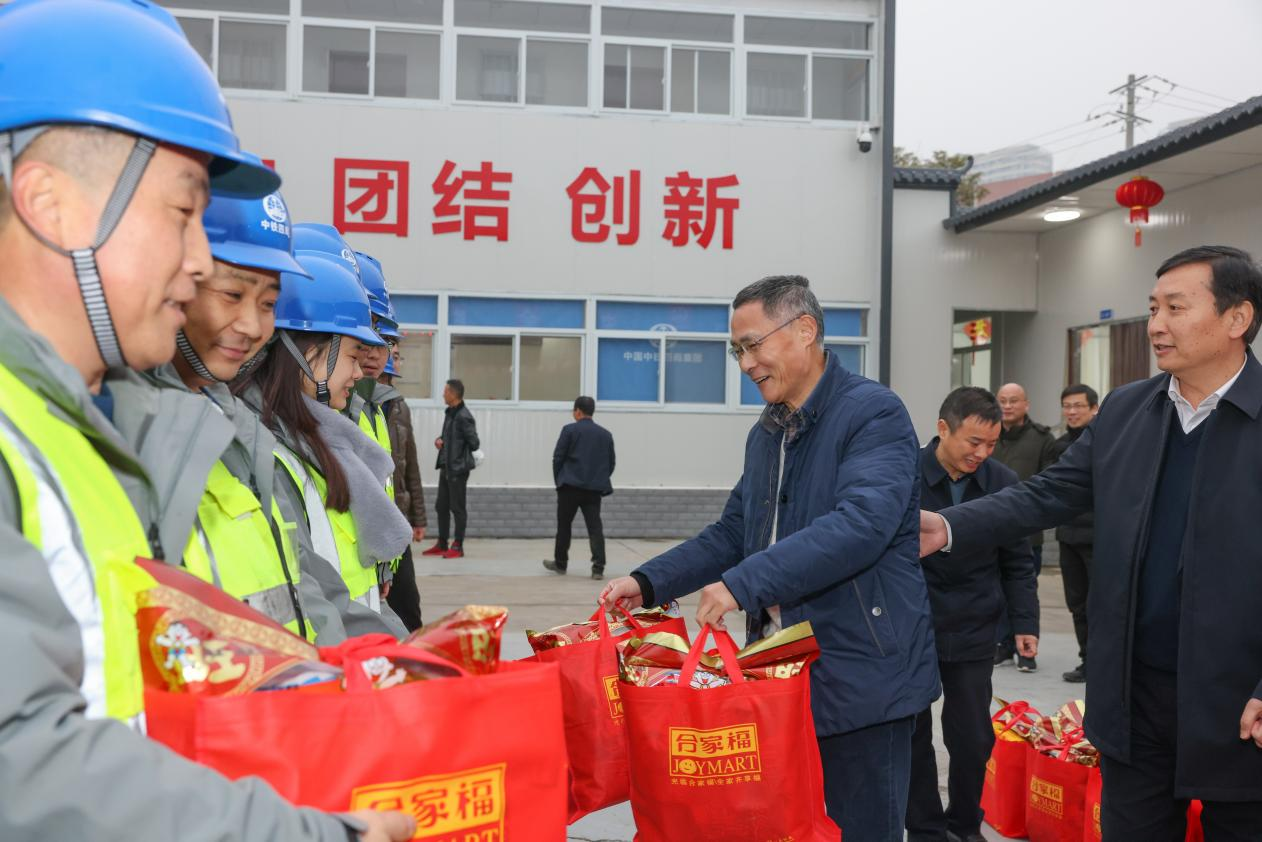 为深入学习贯彻习近平总书记关于新型冠状病毒肺炎疫情防控的重要指示批示精神,充分发挥基层党组织在疫情防控中的战斗堡垒作用和党员先锋模范作用,践行“以人民为中心”的发展思想,提升城投匠人的幸福感和获得感,1月25日农历小年当天,金年会体育app下载官网党支部领导班子及广大党员同志来到宿松路快速化改造项目施工现场组织开展“不停工建新功,温暖与坚守同在”主题党日活动。
